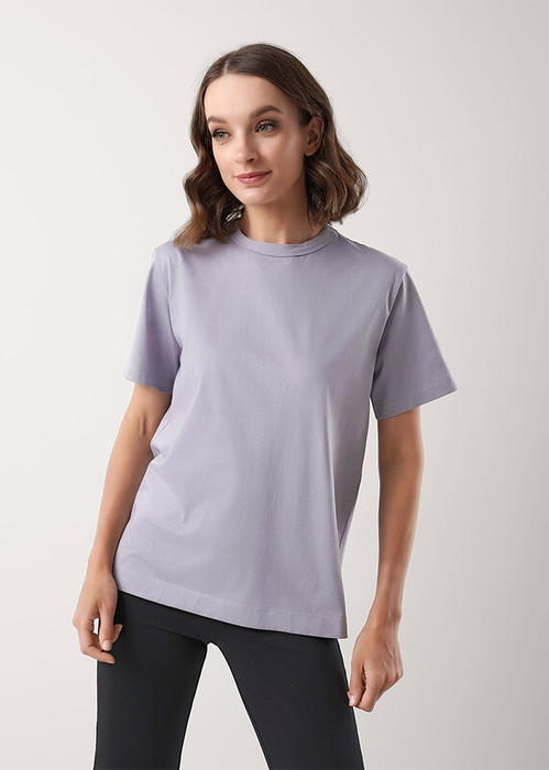 Джемпер умеренного объема из хлопкового трикотажного полотна. Втачной короткий рукав. Округлая горловина с окантовкой.