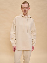 Джемпер свободного силуэта из трикотажного полотна двух видов с капюшоном. Рукав реглан комбинированный с рельефами. По низу рукава и изделия притачной манжет. Спереди нашивка.