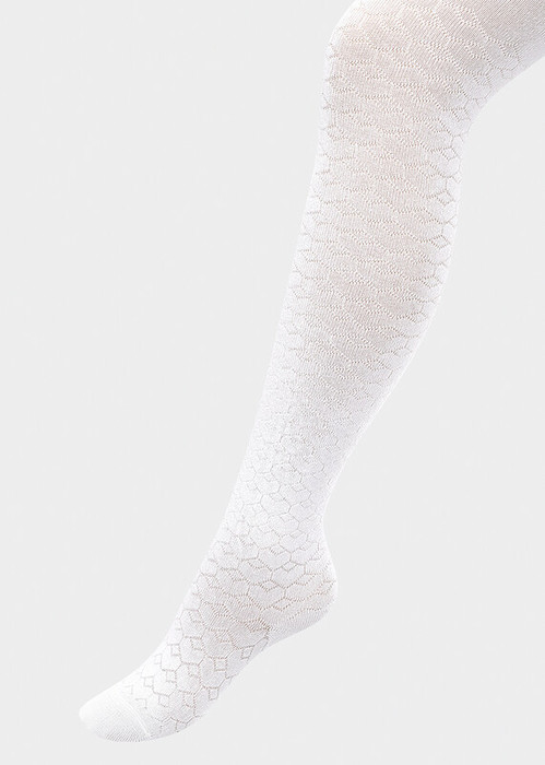 Стильные колготки для девочек, выполненные рельефным рисунком в виде сердечек. Эластичная фактура трикотажа не сковывает движения, колготки хорошо сидят на фигуре. Данная модель подойдет как для школы, так и для повседневной носки.