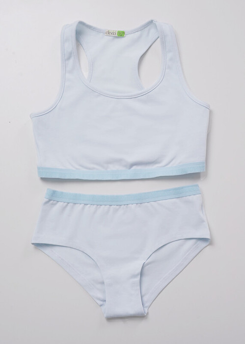 Бельевой комплект для девочки в нежных цветах из хлопка с эластаном. Состоит из топа-борцовки и полушорт.