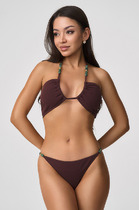 Костюм купальный женский однотонный из полиамида с эластаном, лиф с треугольными чашечками на регулируемых бретелях с магнитной застежкой, трусы бикини с высокой посадкой.