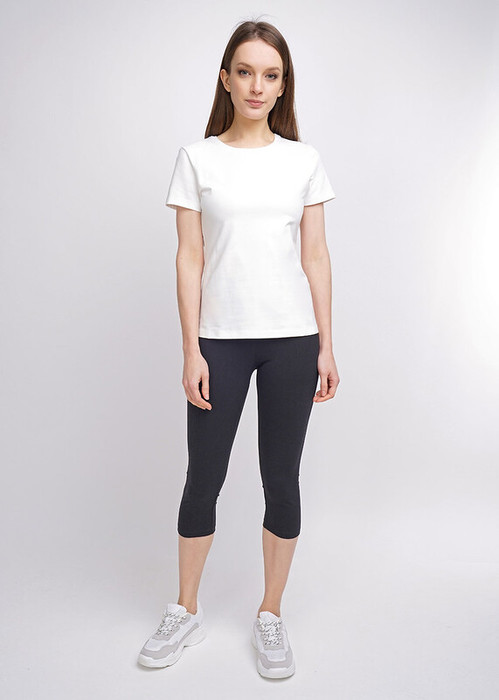 Лосины женские укороченные из плотного эластичного трикотажного полотна. Отрезной пояс.