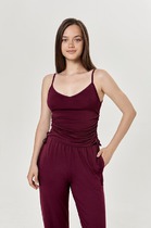 Майка из трикотажного полотна - рибана. Умеренный объем. Широкая бретель,округлая горловина. По пройме и горловине окантовка.