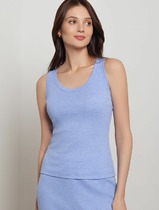 Майка из хлопкового трикотажного полотна рибана. Умеренный объем. Широкая бретель, округлая горловина. По горловине и пройме окантовка.