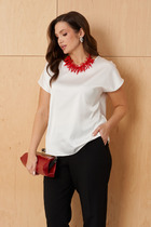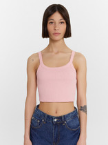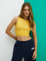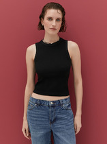 Майка из хлопкового трикотажного полотна рибана. Умеренный объем. Широкая бретель, округлая горловина. По горловине и пройме окантовка.