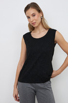 Футболка прямого кроя с втачным рукавом классической длины, декорирована кружевом по переду.