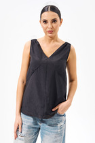 Приталенная майка на широкой бретели классической длины из полиамида удачно сочетается с лосинами LL012pt