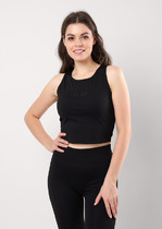 Женская укороченная майка из микрофибры в рубчик. Майка на широкой бретели, с глубоким круглым вырезом.