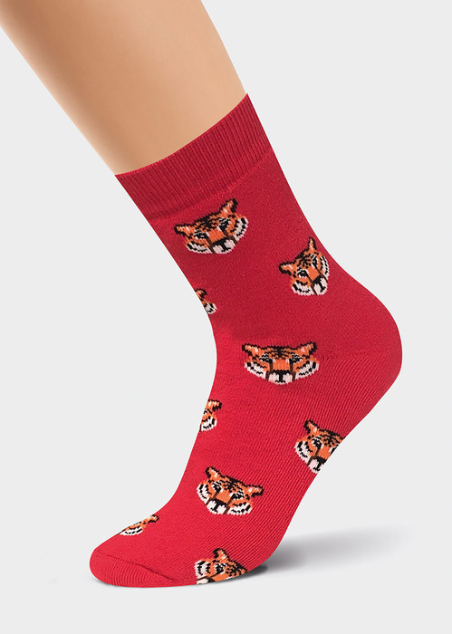 Артикул поставщика: Д580П/1 Состав: 80%хлопок, 15%полиамид, 5%эластан Год: 2021 Страна: Россия Российский размер: 23 Длина стопы: 22-24плюшевый новогодний женский носок с симоволом года " тигр"