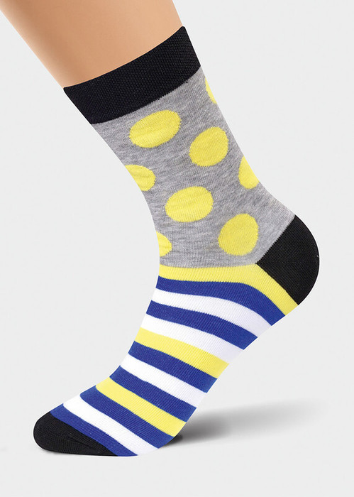 яркие молодежные носки в сочетании гороха и полоски
