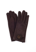 Женские перчатки из трикотажного полотна имитирующего внутри искусственный мех, декорированы кожанным ремешком на запястье, на большом и указательном пальцах вышивка ""сенсорными"" нитками, размер 18.