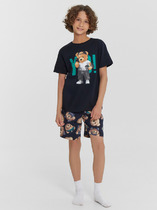 Комплект хлопковой пижамы из джемпера и брюк. Джемпер свободного кроя дополнен эластичной горловиной и манжетами. Брюки среднего объема, эластичный пояс и манжеты обеспечат комфорт и идеальную посадку, а стильная набивка подарит хорошее настроение.