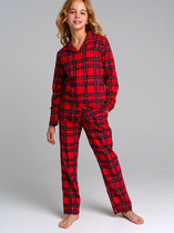 Комплект хлопковой пижамы из джемпера и брюк. Джемпер свободного кроя дополнен эластичной горловиной и манжетами. Брюки среднего объема, эластичный пояс обеспечит комфорт и идеальную посадку. По низу брюк эластичные манжеты.