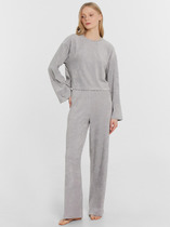 Платье-рубашка для дома и отдыха из хлопкового трикотажного полотна с карбоном, прямого силуэта. Втачной длинный рукав. Застёжка на пуговицы, воротник с лацканами. На детали переда накладной карман, нашивка. Низ изделия округлой формы, по бокам разрезы.