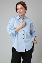 Блузка из текстильного полотна лен с вискозой,прямого силуэта. Длинный рукав со спущенной линией плеча, по низу манжет с разрезом. По борту цельновыкроенная планка с застежкой на пуговицы, по горловине отложной воротник со стойкой. По бокам разрезы.