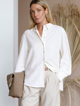 Блузка из текстильного полотна лен с вискозой,прямого силуэта. Длинный рукав со спущенной линией плеча, по низу манжет с разрезом. По борту цельновыкроенная планка с застежкой на пуговицы, по горловине отложной воротник со стойкой. По бокам разрезы.