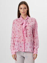 Блузка из текстильного полотна поплин,прямого силуэта на пуговицах с отложным воротником на стойке. По борту планка с пуговицами, по спинке кокетка со складками. Длинный рукав со спущенной линией плеча, внизу манжет с пуговицей. Низ изделия фигурный.