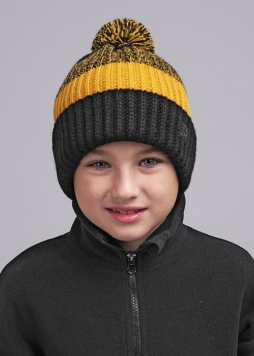 Clever Шапка детская CLE 433838ап флис чёрный/горчичный
