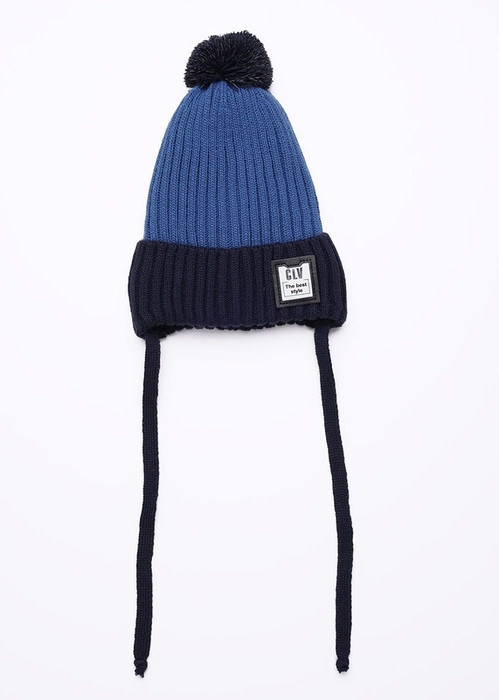 Детская шапка с отворотом на завязках. Декорирована стильной нашивкой в височной зоне и ниточным помпоном. Утепление флисом и синтепоном по всей голове. Идеально подойдёт для холодной зимы.