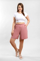 Женские шорты с высокой посадкой. По талии широкая резинка, обеспечивающая комфортную посадку. По бокам декоротивные вставки в рубчик.