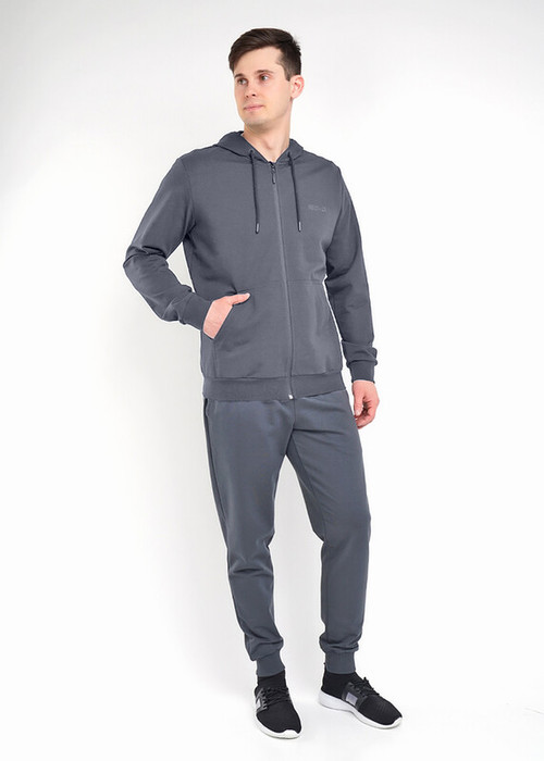 Толстовка с застежкой-молнией по переду на капюшоне из трикотажного полотна - футер. Рукава втачные с манжетой, по низу пояс. Капюшон со шнуром, спереди прорезиненный карман. Для функциональности и удобства спереди карман-кенгуру для повседневной носки.