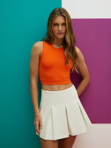 Женская укороченная майка из микрофибры с широкой бретелью. Майка с глубоким круглым вырезом. В области груди вывязан рубчик, обеспечивающий хорошую поддержку.