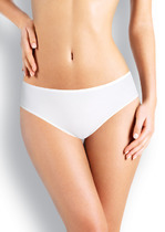 Трусы-бикини женские из эластичного хлопкового полотна. Обработка краев по талии - обтачка из основы на внутренней резинке, по ноге - узкая окантовка. По спинке кружево. По переду бант.
