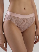 Бразилиана. Комбинированная модель с кружевной вставкой по верху переда и кружевной спинкой со средним швом. По поясу и ножке со стороны переда обработка резинкой с фестоном. На детали переда - небольшой атласный бант.
