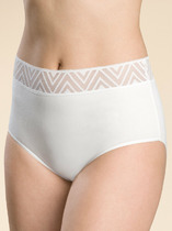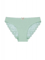 Слипы комфортной посадки из хлопкового полотна с добавлением эластана. По спинке-треугольная кружевная вставка и средний шов. По талии - жаккардовая резинка и узкое кружево, по ножке - полуокантовка и вставки из широкого кружева на тело.