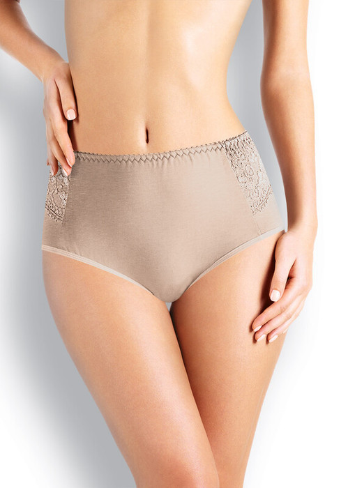 Трусы макси утяжка женские из плотного эластичного хлопкового полотна. По переду отделка кружевом и двойной слой основного полотна. Обработка краев по талии - ажурной резинкой с фестоном, по ноге - окантовкой.