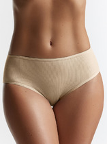 Трусы макси женские из эластичного хлопкового полотна. Обработка краев по талии жаккардовая резинка, по ноге - полуокантовка. По переду боковые вставки из сетки, швы застилом.