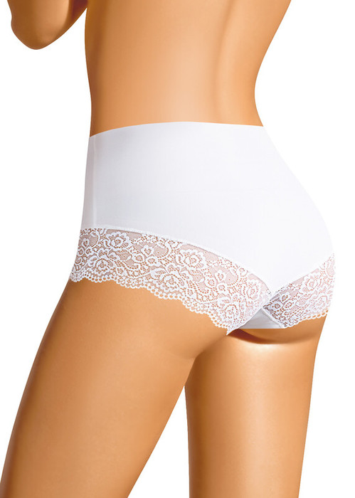 Бесшовные трусы макси комфортной посадки. По ножке настрочено широкое кружево.