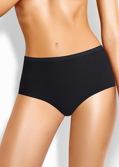 Трусы-макси женские из эластичного вискозного полотна. Обработка по талии - жаккардовая резинка, по ноге - открытый срез.