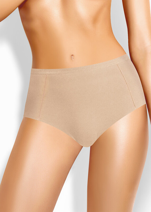 Трусы макси на высокой посадке из интерлока, состав 80% хлопок, 20% эластан. Боковые швы смещены в сторону переда, по ножке бесшовная обработка, полотно не распускается за счет особенностей плетения, по талии обработка жаккардовой резинкой.