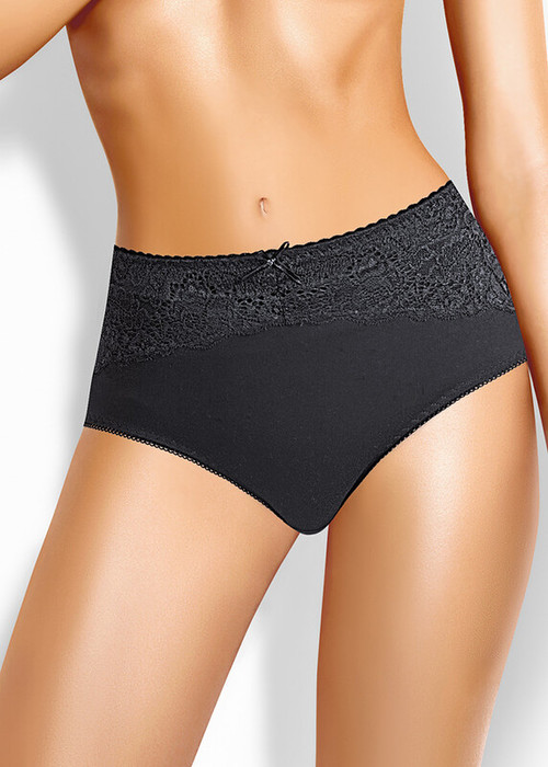 Трусы макси из хлопкового полотна с добавлением эластана комфортной посадки. На детали переда вставка из широкого кружева. По поясу и ножке резинка с фестоном.