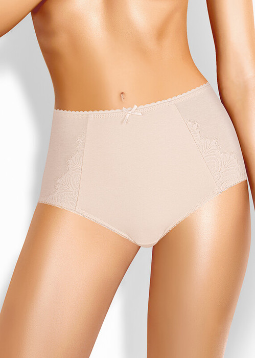 Трусы-макси утяжка женские из плотного эластичного хлопкового полотна. Обработка краев - ажурной резинкой с фестоном. По переду декоративные резы, вставки из кружева и бант.