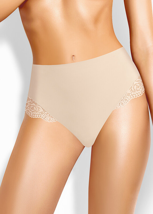 Бесшовные трусы стринги комфортной посадки. По бокам вставки из широкого кружева.