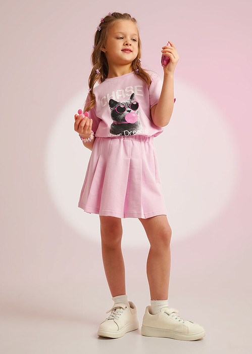 Стильная юбка из футера станет отличным дополнением к твоему гардеробу.Силуэт трапеция, со складками спереди. Внутренняя резинка по талии, универсальная длина. Создавай яркие неповторимые образы,сочетая брюки с футболками или свитшотом из новой коллекции
