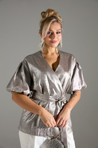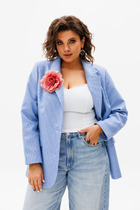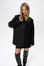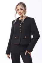 Вязаный жакет из вискозной пряжи с добавлением акрила, свободного силуэта на молнии переплетения гладь. По горловине отложной воротник. Длинный втачной рукав. По низу изделия и рукавов манжеты. По воротнику и манжетам ластичное переплетение.