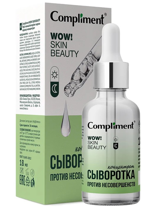 Сыворотка-концентрат серии WOW! SKIN BEAUTY направлена на эффективное уменьшение несовершенств. Благодаря высокому содержанию активных компонентов сыворотка заметно выравнивает тон и текстуру, способствует регенерации, сужает поры и дарит ощущение чистоты, свежести и комфорта, прекрасно освежает цвет лица.
