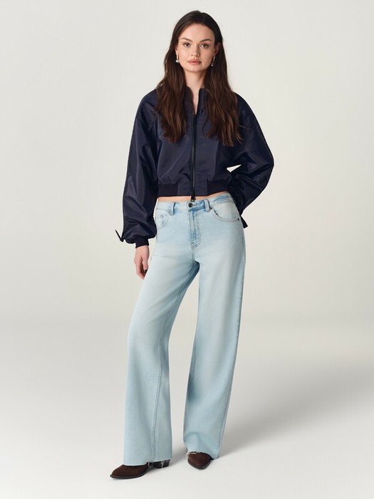 Удлинённые джинсы wide leg небесно-голубого цвета с необработанным краем подчеркнут лёгкость и выразительность вашего образа. Модель ultra-long  –  отличный вариант для трендовых стилизаций с брюками в пол.