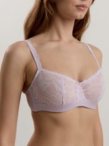 Классическая серия белья Aura создана из неэластичного функционального трикотажа и кружева с растительным рисунком. Белье эффектно подчеркивает женственные линии и гарантирует безупречную поддержку, необходимую для обладательниц пышных форм.