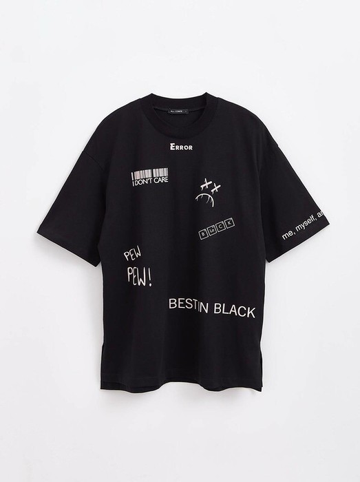 Oversize-футболка «Error» станет основой для множества расслабленных базовых образов. · oversize· круглый вырез горловины с планкой в рубчик· по верху спинки нашивка «Designed for emotions»· спущенная линия плеча· рукава до локтя· разрезы по бокам· печатные рисунки «Error»· слегка удлиненная спинка· 100% хлопок