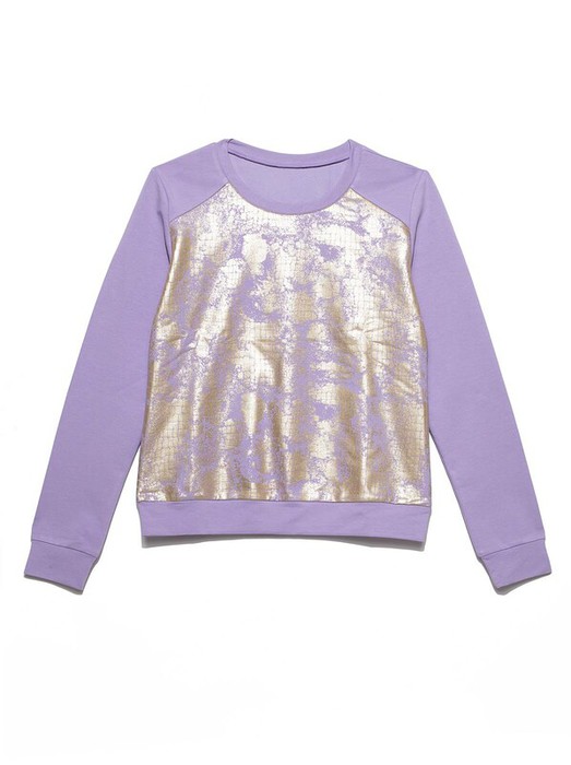 Свитшот из эластичного хлопкового полотна с облегающими манжетами и притачным поясом мягко облегает силуэт, не сковывает движений и при этом идеально смотрится на любой фигуре. Изюминку в ваш повседневный образ внесет эффектный золотой принт, нанесенный методом металлической печати.