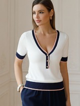 27.03 Vilatte Джемпер с V-вырезом с коротким рукавом из вискозы D39.387 белый