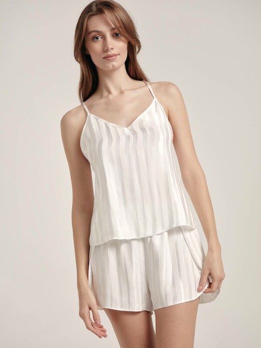 Топ умеренно свободного кроя с атласными полосами – эффектный, соблазнительный и при этом комфортный вариант для домашнего и бельевого гардероба. SILK TOUCH VISCOSE: премиальная вискоза с эффектом «ощущение шелка» подарит мягкость и комфорт на протяжении всего дня. · V-образная линия декольте· тонкие регулируемые бретели, переходящие в перекрест по спине· глубокий вырез по спине · умеренно свободный крой· вискоза премиального качества · полотно с атласными вертикальными полосами· сохранение формы и цвета при соблюдении рекомендаций по уходу· эффектный и соблазнительный вариант для домашнего гардероба.