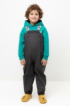 Ветровочные брюки из мембранной, фактурной ткани с дополнительной тефлоновой обработкой. Данный вид обработки предохраняет изделие от загрязнения и лучше отводит влагу. Подклад из 100%  полиэстера - флиса. Область коленей дополнительно усилена деталями из основной ткани. В поясе предусмотрен шнурок для регулировки ширины изделия. Во всех изделиях верхнего ассортимента для безопасности ребенка предусмотрены светоотражающие элементы.