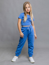 Брюки из мягкого эластичного футера для девочки. Модель с поясом на резинке. Изделие сохраняет цвет и форму после многократных стирок. Все трикотажные полотна производятся в соответствии с нормами швейцарского сертификата ЭкоТекс.