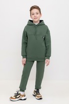 Брюки для мальчика из мягкого петельчатого трикотажа. Эластичный пояс на резинке регулируется по ширине с помощью шнурка. По бокам два удобных накладных кармана. Внизу эластичные манжеты.