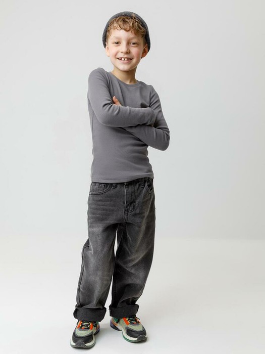 Однотонный джемпер с длинными рукавами. Сшит из высококачественной эластичной рибаны с начёсом. Эластан в составе позволяет изделию быть более эластичным и дольше сохранять опрятный внешний вид. Обтачка горловины выполнена из основного материала.